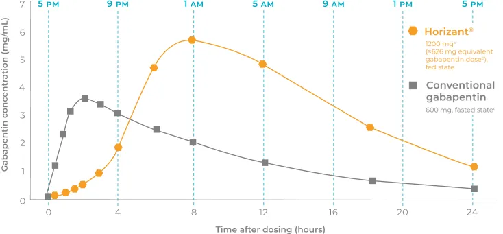 Horizant® is not interchangeable with other gabapentin products. The clinical significance of the pharmacokinetics (PK) data for Horizant® and gabapentin is unknown5